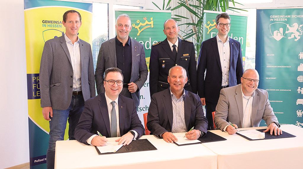Hessens Innenminister Professor Dr. Roman Poseck (CDU) hat heute die Gemeinde Flieden besucht und gemeinsam mit Bürgermeister Christopher Gärtner (CDU) und dem Beigeordneten der Gemeinde, Christian Ackermann, den Koordinationsvertrag zwischen dem Land Hessen und der Gemeinde Flieden unterzeichnet, mit dem in Flieden der Freiwillige Polizeidienst eingeführt wird. Als zusätzliche Ansprechpartner sollen die ehrenamtlichen Polizeihelferinnen und Polizeihelfer künftig auf öffentlichen Plätzen und Straßen Präsenz zeigen und so das Sicherheitsgefühl der Bürgerinnen und Bürger in der Kommune stärken.