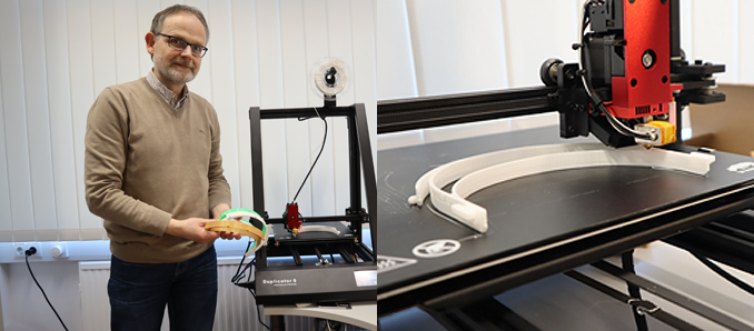 Dr. Klaus Listmann von der vhs betreut den Druck der Halterungen für die Schutzvisiere. Fotos: Lisa Laibach