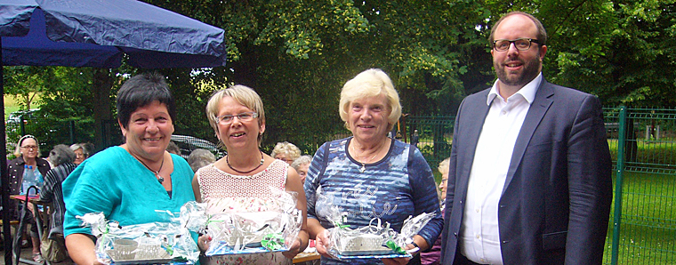 Bad-Salzschlirf. Seit vielen Jahren schon treffen sich die Salzschlirfer Senioren einmal im Monat zum gemütlichen Beisammensein. Jedes Mal steht etwas Anderes auf dem Programm. So findet im Juli traditionell das Grillfest der Gruppe statt. Bei Würstchen und leckeren Salaten trifft man sich am Bad Salzschlirfer Grillplatz und verbringt einen kurzweiligen Nachmittag im Freien. Seit Bestehen des Seniorentreffs organisieren Helga Reith, Liane Brehl und Brunhilde Kühn die Zusammenkünfte. Mit viel Liebe zum Detail werden die Tische dekoriert und Programmpunkte entwickelt. Das Essen wird organisiert und leckere Kuchen werden gebacken. Für das leibliche Wohl ist immer bestens gesorgt. Die Teilnehmer sind regelmäßig begeistert; und man freut sich immer sehr auf den Ersten Montag eines Monats. Für die viele Arbeit, die die drei Damen ehrenamtlich leisten, dankte nun Bürgermeister Kübel mit einem kleinen Präsent: „Wir sind sehr froh darüber, dass Sie allmonatlich dieses tolle Angebot ermöglichen. Mein Dank ist verbunden mit der Hoffnung, dass Sie noch viele Jahre gesund und kreativ bleiben für zukünftige Treffen,“ betonte der Rathauschef. Die Besucher des Grillfestes dankten den guten Seelen mit lautem Applaus für ihr tolles Engagement. +++ fuldainfo