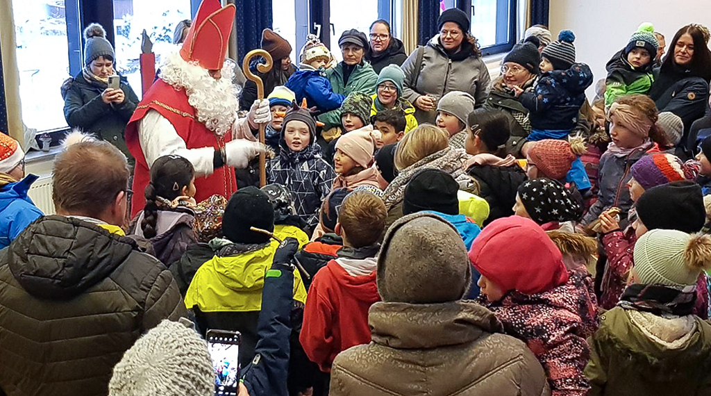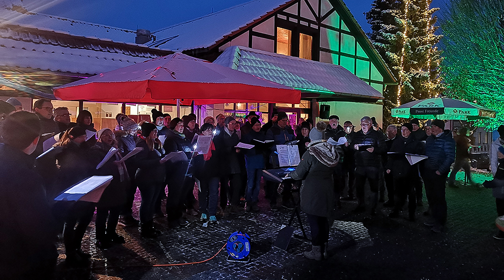 Der 3. Adventssonntag in Ehrenberg (Rhön) – leichter Schneefall, Sitzgruppen mit echten Schaf- und Ziegenfellen, der Bürgerhausplatz wird durch den Schein der Feuerschalen und weihnachtliche Beleuchtung in ein gemütliches Licht getaucht – viele Gäste aus nah und fern sind zum ersten „Ehrenberger Adventsglühen“ nach Wüstensachsen gekommen. Neben winterlichen Cocktail-Variationen, leckerem Glühwein, selbstgemachten Burgern, gegrillten Leckereien, Kaffee & Kuchen, Crêpes, heißen Waffeln, argentinischen Empanadas und weiteren Spezialitäten, Allerlei von den Streuobstwiesen sowie einer Weinbar im Rathauskeller wurde den Besuchern weihnachtliche musikalische Unterhaltung durch den Musikverein Hohe Rhön e.V. Wüstensachen geboten. Zudem traten erstmalig die Ehrenberger Chöre gemeinsam auf und luden zum Mitsingen von Weihnachtsliedern ein. Auch der Nikolaus hat es sich nicht nehmen lassen, nach Ehrenberg zu kommen und im Bürgerhaus Geschenke an die Kinder zu verteilen. Außerdem wurde gebastelt, mit einer Handspindel konnten Fäden aus echter Schafwolle gesponnen werden und vom Wüstensachsener Büchereiteam wurden Vorlesestunden für die Kleinen angeboten. „Dieses Event war der gemütliche und gelungene Abschluss eines abwechslungsreichen Jubiläumsjahres der 50-jährigen Gemeindegeschichte. Der Dank geht an dieser Stelle an alle, die dieses Jahr wahrlich zu etwas Besonderem gemacht haben“, so Bürgermeister Peter Kirchner. +++ pm