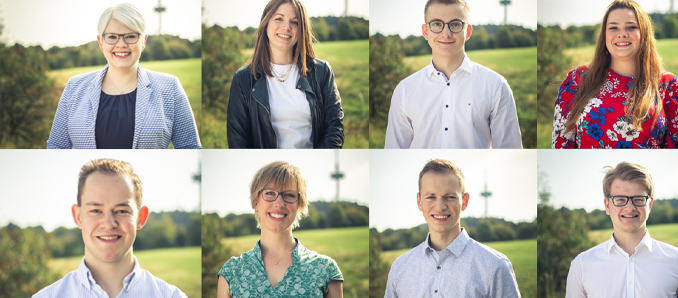 Jennifer Gießler, Laura Refflinghaus, Niklas Lingner, Stefanie Spielberger, Lukas Kaufmann, Sonja Müller, Jan-Hendrik Dörr und Luca Marcel Korell. (v.l.o.)