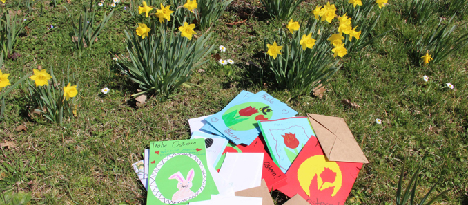 Bunt, gebastelt, gemalt, handgeschrieben – dutzende Ostergrüße haben den Caritasverband für die Diözese Fulda in den vergangenen Tagen erreicht. Die Caritas im Bistum Fulda hatte dazu aufgerufen, zum Osterfest Briefe an Seniorinnen und Senioren in den Altenpflegeheimen zu schreiben. Unter dem Stichwort „Briefe gegen Einsamkeit“ kamen viele kreative und liebevoll geschriebene Einsendungen zusammen, die nun pünktlich zu den Feiertagen an die Einrichtungen der Caritas versendet werden und den Bewohnerinnen und Bewohnern ein Lächeln auf die Lippen zaubern dürften.