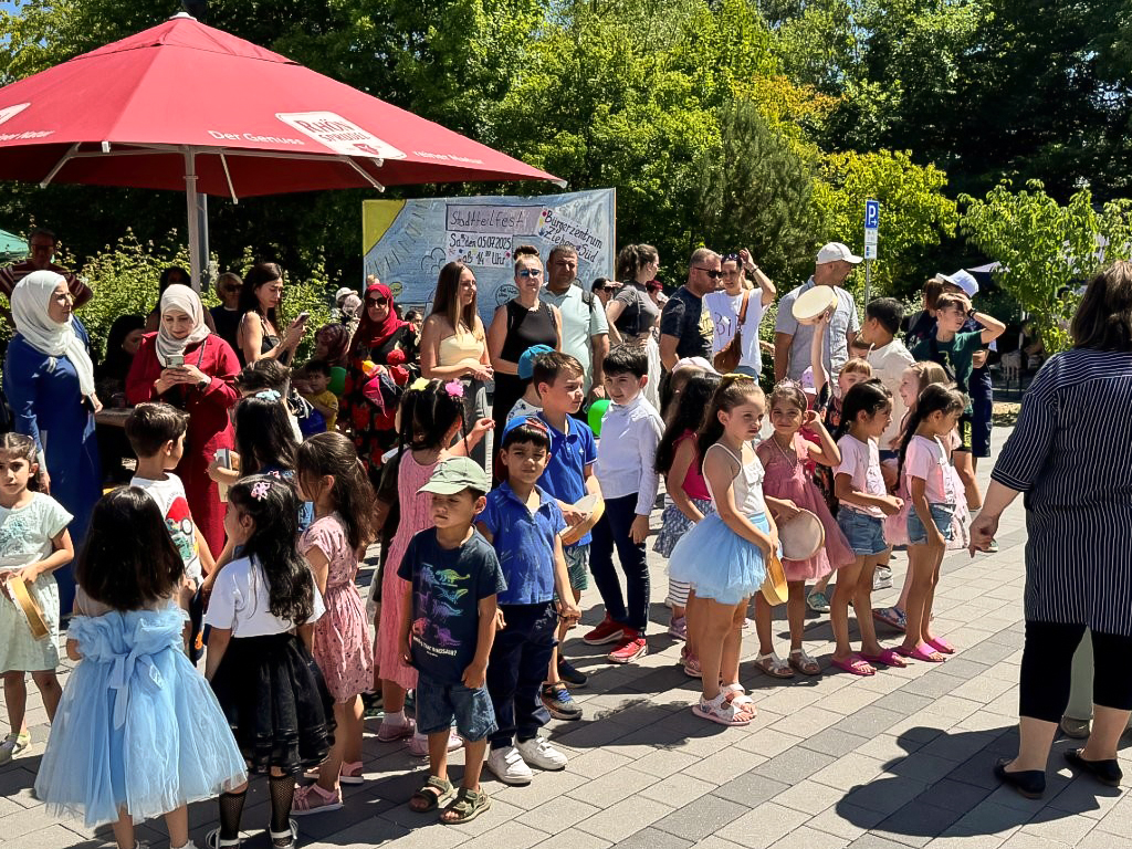 Kinder der Kitas und verschiedener Projekte traten mit Liedern und Tänzen im Bühnenprogramm auf. Ein Solo-Gesangsauftritt und eine Trommelsession rundeten das Bühnenprogramm ab. Neben Kaffee und Kuchen gab es ein reiches Angebot an Getränken und Speisen von Bratwurst über Köfte und Gözleme bis zu einem vielfältigen interkulturellen Buffet.