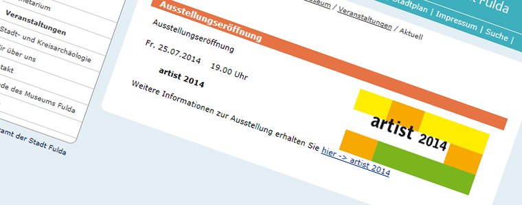 Fulda. Mit der „Artist 2014“-Sonderausstellung ermöglicht das Vonderau Museum Fulda erneut vier Fuldaer Künstlern ihre Werke der interessierten Öffentlichkeit zu präsentieren. „Artist“ ist ein Projekt mit einer Gemeinschaftsausstellung von mehreren Künstlern, die sich in den drei großen Sonderausstellungsräumen präsentieren. Das Projekt bietet aber auch gleichzeitig die Möglichkeit einer individuellen Selbstdarstellung, die jedoch eine räumliche Berührung nicht ausschließen soll. Dialog und Austausch zwischen oft sehr unterschiedlichen künstlerischen Positionen sind gefragt und werden gerade herausgefordert. Dieser Weg verlangt von allen Beteiligten ein hohes Maß an Kompromissbereitschaft, damit aus dem Einzelwerk eine überzeugende Gesamtschau wird. Die „Artist 2014“-Sonderausstellung mit Michael Barthel, Meike Dölp, Petra Lange und Jörg Nemela wird am Freitag, 25. Juli 2014 um 19 Uhr eröffnet. Mit allen teilnehmenden Künstlern bietet das Vonderau Museum sonntags Künstlergespräche an. +++ fuldainfo