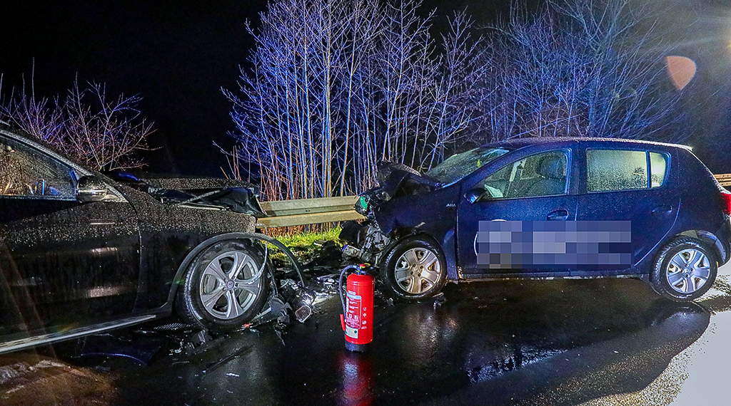 Im weiteren Verlauf stieß der Pkw mit einem weiteren aus Richtung Tann kommenden Pkw frontal zusammen, welcher mit einem Elternpaar und dessen siebenjährigen Kind besetzt war. Während der Lkw-Fahrer unverletzt blieb, wurden alle vier Personen in den Pkw schwer, aber nicht lebensgefährlich verletzt und in der Folge in umliegende Krankenhäuser verbracht. Es entstand ein Gesamtschaden von etwa 75.000 Euro, zudem verlor der Lkw aufgrund eines aufgerissenen Tankes etwa 400 Liter Diesel.