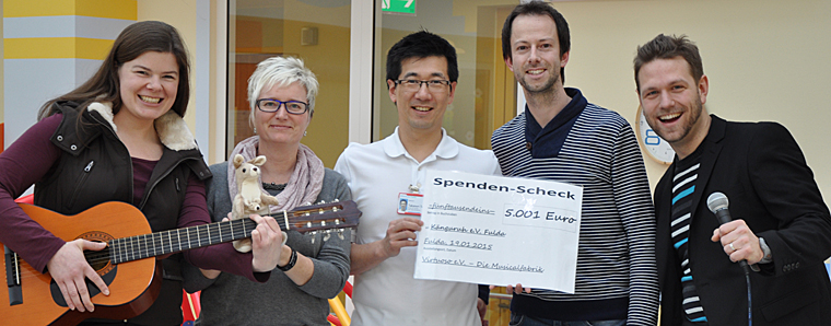 Fulda. Einen Abend voller unvergesslicher Momente erlebten die Besucher, die Ende letzten Jahres die beiden „Best of Konzerte“ des gemeinnützigen Vereins Virtuoso – die Musicalfabrik besuchten. Von der Musik beflügelt war die Spendenbereitschaft groß: 2001 Euro spendeten die Zuschauer, nochmals 3000 € legte „Virtuoso“ aus dem Erlös obendrauf. So kamen insgesamt 5001 Euro zustande, die nun dem Förderverein Känguruh e.V. übergeben wurde.