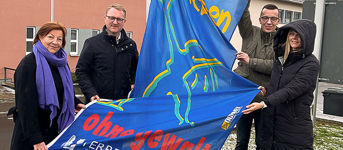 Die Zahl der Fälle häuslicher Gewalt ist in Deutschland im Jahr 2024 erneut gestiegen. Nach Angaben des Bundeskriminalamts wurden bundesweit rund 10 000 Fälle mehr registriert als im Vorjahr. Laut Statistik wurden 308 Mädchen und Frauen getötet, 191 von ihnen durch Menschen aus ihrem näheren Umfeld. Um auf die anhaltende Problematik aufmerksam zu machen, hisst der Vogelsbergkreis am Internationalen Tag gegen Gewalt an Frauen, dem 25. November, erneut die blaue Fahne der Organisation „Terre des femmes“ vor dem Landratsamt in Lauterbach. Die Fahnenaktion steht unter dem Leitgedanken „Frei leben ohne Gewalt“.