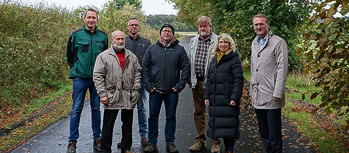 Was lange währt, wird endlich gut: Dr. Jens Mischak (von rechts), Erster Kreisbeigeordneter, gemeinsam mit Susanne Schaab, Bürgermeisterin der Stadt Schotten, Otto Ranft, Vorsteher der Jagdgenossenschaft Michelbach, Holger Becker, Ortsvorsteher von Michelbach, Stefan Günther, Sachgebietsleiter Kreisstraßen im Amt für Bauen und Umwelt, Willi Zinnel, Stadtrat der Stadt Schotten, zuständig für Michelbach, und Mathias Wilfer, Bauamt der Stadt Schotten, bei der Übergabe der Querspange Michelbach an die Stadt Schotten. Foto: C.Lips