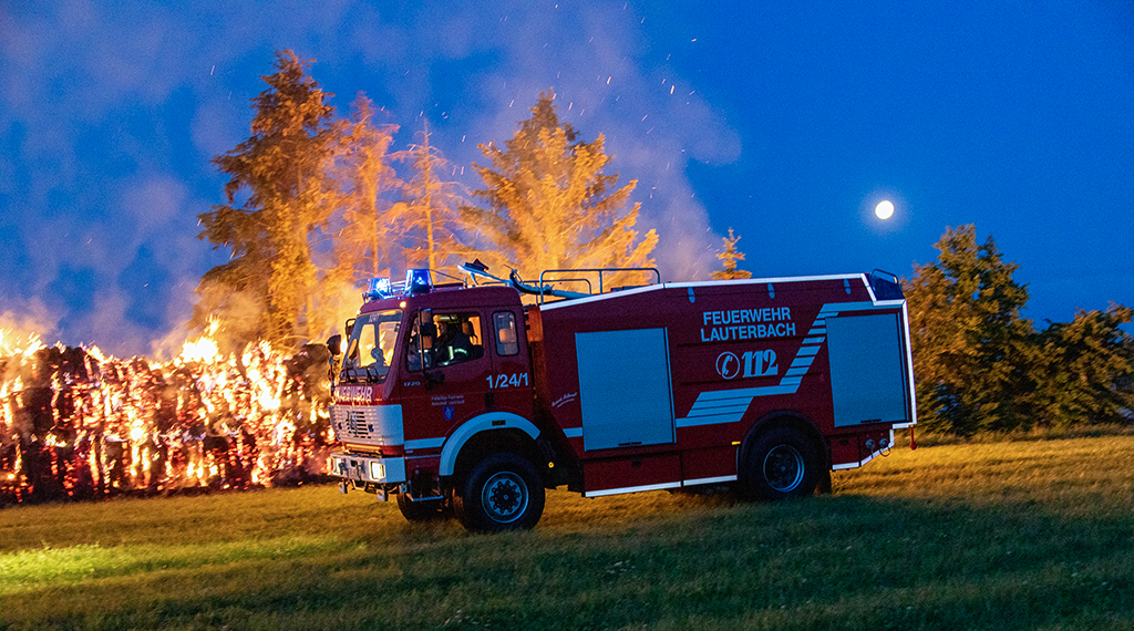 Rund 200 Heuballen brannten am frühen Dienstagmorgen im Bereich „Am Bürgerhaus“ im Lauterbacher Ortsteil Heblos. Gegen 04.00 Uhr wurden die Feuerwehren alarmiert, diese löschten die brennenden Ballen und mussten zudem einige Fichten in der Nähe fällen, um ein Übergreifen des Feuers per Funkenflug auf diese zu verhindern. Verletzt wurde niemand. Die Polizei schätzt den Sachschaden auf rund 3.000 Euro, der Landwirt spricht von einem Sachschaden von rund 7000 Euro. Die Polizei vermutet Brandstiftung hinter dem Feuer und ermittelt. +++ [su_112]