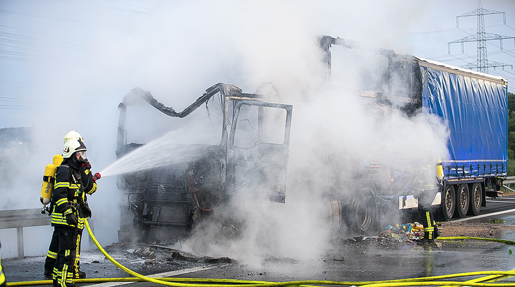 Die Feuerwehr lud die Überreste des Gefahrguts ab. Bis dahin war die Autobahn mehrere Stunden komplett gesperrt. Nachdem die Gefahr gebannt war, konnte ein Fahrstreifen wieder freigegeben werden. Die Aufräumarbeiten zogen sich bis tief in die Nacht hin. Die Polizei schätzt den Schaden auf über 200.000 Euro. Verletzt wurde trotz der unliebsamen Überraschung während der Löscharbeiten glücklicherweise niemand. +++