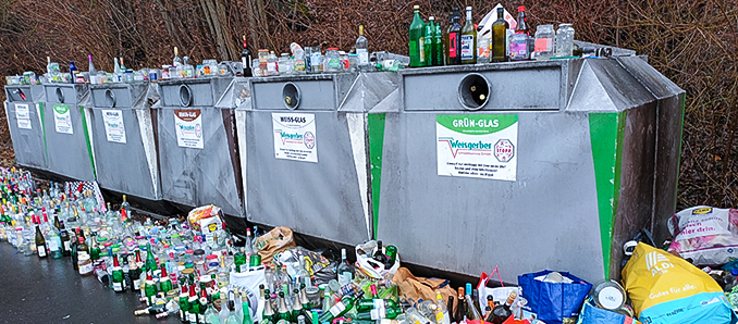 Müssten also vielleicht trotz höherer Kosten mehr Container aufgestellt werden? „Das Volumen an Behältern ist in der Regel ausreichend“, meint Sebastian Eberl, technischer Betriebsleiter beim Wächtersbacher Entsorgungsunternehmen Weisgerber. Für ihn besteht das Problem oftmals eher darin, „dass nicht alle Plätze gleich stark genutzt werden.“ Die Frage, ob es häufiger Probleme mit vollen Containern und/ oder rundherum abgestellten Altglas beziehungsweise anderem Müll wie Elektroschrott, Altkleidern, Tüten, Taschen oder Plastikspielzeug gibt, beantwortet Eberl mit dem Verweis: „Bei Feiertagsverschiebungen, Ausfall von Personal oder Technik und Ereignissen wie Weihnachten und Silvester“ könne es „zu Beistellmengen kommen.“ Um Abhilfe zu schaffen, setzt das Unternehmen Weisgerber auf, „zusätzliches Personal und Fahrzeuge“ – wenn möglich.