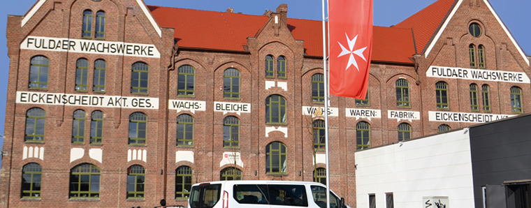 „Vom Verkauf der „Eika“ hörten wir im Radio und fuhren am gleichen Tag zur Fabrik. Wir waren von den alten Gebäuden sofort begeistert, trotz des extrem desolaten Zustandes. Man hätte zumindest die Löcher im Dach schließen können, um das schöne alte Gebäude zu bewahren“, erzählt Herr Hausner. Nachdem die Familie sich über die Geschichte des Gebäudes informiert und eine Besichtigung vorgenommen hat, war der Entschluss zum Erwerb gefasst. Das an exponiertem Standort weithin sichtbare, markante Gebäude war seit 1824 Sitz des Traditionsunternehmens Eickenscheidt, später EIKA. Es war Zentrum der deutschen Kerzenfabrikation und größter Arbeitgeber im Kreis Fulda. Seit der Restaurierung (2016-2019) wird das Gebäude vom Malteser Hilfsdienst genutzt. In den großzügigen Räumlichkeiten konnten die Malteser-Institutionen mit ihren vielfältigen Angeboten konzentriert und zentralisiert werden.