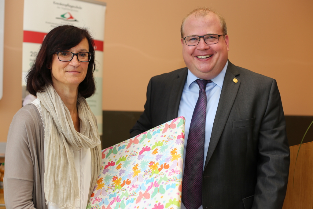 Auf einem 60. Geburtstag erwartet man langatmige Reden, wenig Humor und gutbürgerliches Essen. Ganz anders beim Jubiläum der Krankenpflegeschule des Vogelsbergkreises. Geistreich und prägnant fassten sich die vielen Redner kurz und haben den-noch mit ihren Worten bleibenden Eindruck hinterlassen, über die beim anschließenden Finger-Food-Buffet noch ausführlich debattiert wurde. In ihren Grußworten gingen Schulleiterin Christiane Schwind, Landrat Manfred Görig und Dr. Christof Erdmann als Verwaltungsdirektor des Eichhof-Krankenhauses Lauterbach auf die Entwicklung der Schule ein. Nicht ohne Stolz wies Görig darauf hin, dass die Krankenpflegeschule der größte Ausbildungsbetrieb des Kreises sei, dem er seine Unterstützung weiterhin zusichere. „Ich bin mir bewusst, welche Herausforderungen ihr Beruf mit sich bringt. Sie sind die Stützen der Krankenhäuser, ohne Sie würde dort nichts funktionieren“, schätze der Landrat die Arbeit der anwesenden Ehemaligen sowie der in Ausbildung befindlichen Gesundheits- und Krankenpfleger/innen wert, viele ihm nachfolgende Redner bekräftigten dies. Den Schritt, vor 40 Jahren die Krankenpflegeschulen von Alsfeld und Lauterbach in einer kreiseigenen Schule zusammenzulegen, nannte Görig als „Kristallisationspunkt der Zusammenarbeit“ zwischen Alsfeld und Lauterbach. Es sei eine wichtige, weitreichende und gute Entscheidung gewesen. Allerdings: „Der Pflegeberuf ändert sich, auch die Politik sieht das mit großen Sorgen. Wohin die Reise geht, ist noch nicht klar…“ – so der Landrat und traf mit diesen Worten auf offenen Ohren. Denn auch Christof Erdmann sowie die Festrednerin Anna Maria Bittorf nahmen sich dem Thema an, der eine kurz, die ändere etwas länger.