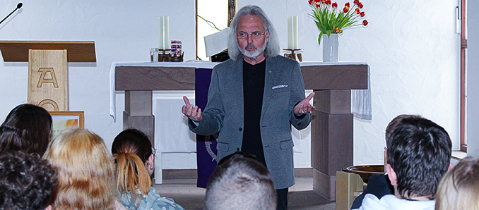 „Jesus begegnet uns in diesem Erlebniskreuzweg als ein Mensch mit Gefühlen,“ erklärt Pfarrer Röder der Schülergruppe. Im Garten Getsemane habe er darum gebetet, dass er den schweren Weg ans Kreuz nicht gehen müsse. „Jesus kennt Gefühle wie Angst.“ Eine weitere Station des Erlebniskreuzwegs zeigt Petrus und den Hahnenschrei. „Die Bibel beschreibt Petrus als einen Mann von starkem Glauben und Jesus treu ergeben,“ erklärt Pfarrer Röder. Dennoch leugnet er aus Angst, Jesus auch nur zu kennen. Erst der Schrei eines Hahns weckt sein Gewissen und führt ihm sein Versagen vor Augen. Doch Jesus vergibt Petrus. „Als Christen dürfen wir Fehler machen und können unserem Leben immer wieder eine neue Richtung geben,“ betonte der Theologe.