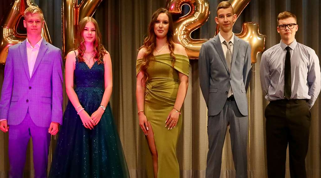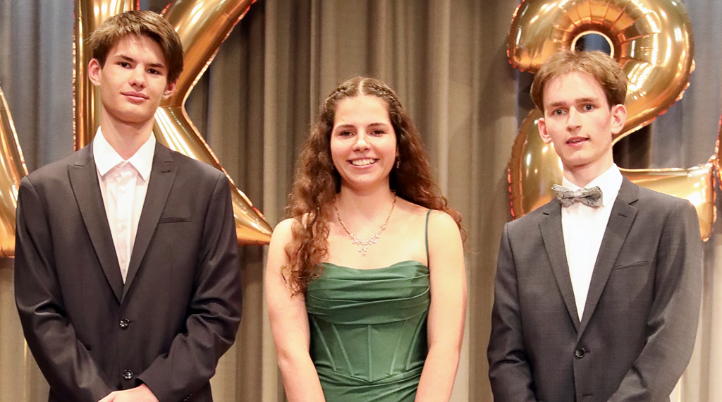 Nach der Ehrung von Schülerinnen und Schülern für ihr besonderes soziales Engagement als Schulsanitäterinnen und -sanitäter, Schulbuslotsinnen und -lotsen sowie als PäM-Mentorinnen und -Mentoren, den Helfern bei der Hausaufgabenbetreuung am Nachmittag, würdigte Rektorin Bianka Roth die Klassenbesten Finn Jesse Reul (Klasse H9; Notendurchschnitt 1,6), Letizia Happ (R10a; 1,8) und Marc Hofmann (R10b; 1,4). Insgesamt vergab die Von-Galen-Schule an 22 Absolventinnen und Absolventen den qualifizierenden Realschulabschluss, an 17 den mittleren Bildungsabschluss, an 18 Schülerinnen und Schüler den qualifizierenden Hauptschulabschluss und an weitere zehn den Hauptschulabschluss. Ein Schüler erhielt ein Abgangszeugnis. Musikalisch umrahmt wurde die Feier von den Musiklehrern Dennis Ankert und Constantin Kuhn, unterstützt von Analena Seiler und Kevin Rausch. Nach einem gemeinsamen Abendessen klang der Abend mit Musik und Tanz aus. +++ pm