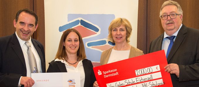 Frankfurt am Main/Eichenzell. And the winner is … diesen Spruch kennt man eher aus Hollywood. Nicht weniger spannend gestaltete sich die Verleihung des diesjährigen Hessischen Schulpreises, den die Arbeitsgemeinschaft der hessischen Industrie- und Handelskammer in Frankfurt am Main vergab. „Erfolgreiche Schulen sollten ausgezeichnet werden! So würdigen wir mit dem Preis das Engagement der Schulen im Bereich der Berufsorientierung.“