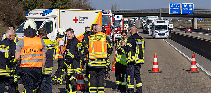 Dramatische Szenen am Mittwochmittag auf der A66: Gegen 13.30 Uhr meldete die Leitstelle einen Unfall mit eingeklemmter Person zwischen Fulda-Süd und Neuhof-Nord. In Höhe Kerzell war es zu einem heftigen Zusammenstoß gekommen – mit teils schweren Folgen.
