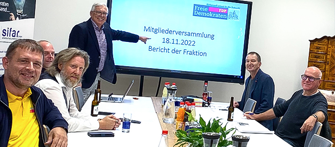 Die Teilnehmer der Mitgliederversammlung zeigten sich beeindruckt von der neuen Firmenzentrale der Firma Sifar. Sie bietet beste Tagungsmöglichkeiten. Baier sprach Marco Farnung seinen Dank für die Ausrichtung der Versammlung aus. Ergänzt wird der neue Vorstand durch drei Beisitzer, Marius Schad aus Rönshausen, Raphael Enders aus Lütter sowie Valentin Witzel aus Eichenzell. Zum Schatzmeister gewählt wurde Leon Hamm, gleichzeitig auch Vorsitzender der Jungen Liberalen in Fulda. „Unsere jüngeren Mitglieder haben Bock auf Politik und wollen mitmachen. Das motiviert ungemein“, so der Fraktionsvorsitzende der FDP im Gemeindeparlament Claus-Dieter Schad. Per Video zugeschaltet wurde Mario Klotzsche, Vorsitzender des FDP-Kreisverbands Fulda. Klotzsche sprach dem noch jungen Ortsverband Eichenzell Lob und Anerkennung für sein Wirken aus und brachte in seinem Grußwort zum Ausdruck, dass er selten einen neuen Ortsverband erlebt habe, der mit so viel Elan und Begeisterung an seine politischen Aufgaben herangetreten sei. „Eure Anträge und Initiativen in der Gemeindevertretung gestalten Eichenzell. Ihr seid wichtig für die Zukunftsthemen eurer Heimatgemeinde“, so Klotzsche.