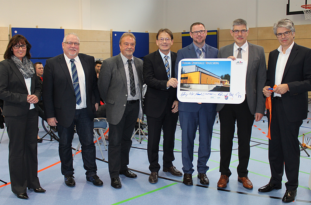 Lauterbach. 2000 Quadratmeter für den Schulsport zweier Schulen in einer modernen und energiesparenden Halle mitten in der Stadt: Das Projekt „Vulkan-Sporthalle Vogelsberg“ wurde am Dienstag in Lauterbach feierlich eingeweiht. Schuldezernent Peter Zielinski (Grüne) und alle übrigen Redner lobten die sehr schnelle Bauzeit der Schulturnhalle in der Lauterstraße von nur etwa einem Jahr. Der Landkreis als Schulträger ist Mieter des Objekts. Projektentwicklungsgesellschaft war die Firma OFB/GHT in Kassel. Die Schulturnhalle kommt 1700 Schülerinnen und Schülern des Alexander-von-Humboldt-Gymnasiums und der Vogelsbergschule zugute.