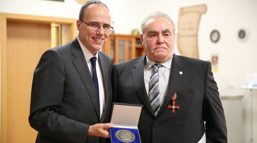 Waldemar Leubecher leisteste in den fünfzig Jahren mehr, als man von einem Normalbürger erwarten darf und erwarten kann, vor allem tat er dies im politischen Ehrenamt. Die Laudatoren würdigten Leubechers vorbildliches Engagement und unermüdliche Einsatzbereitschaft. „Sie haben nicht nur große Einsatzbereitschaft gezeigt, sondern haben sich im wahrsten Sinne des Wortes, so Minister Peter Beuth (CDU), um unser Land, aber am Ende auch um die kommunale Selbstverwaltung, und das zeichnen wir heute aus, verdient gemacht; Sie sind ein leuchtendes, kommunales Vorbild.“