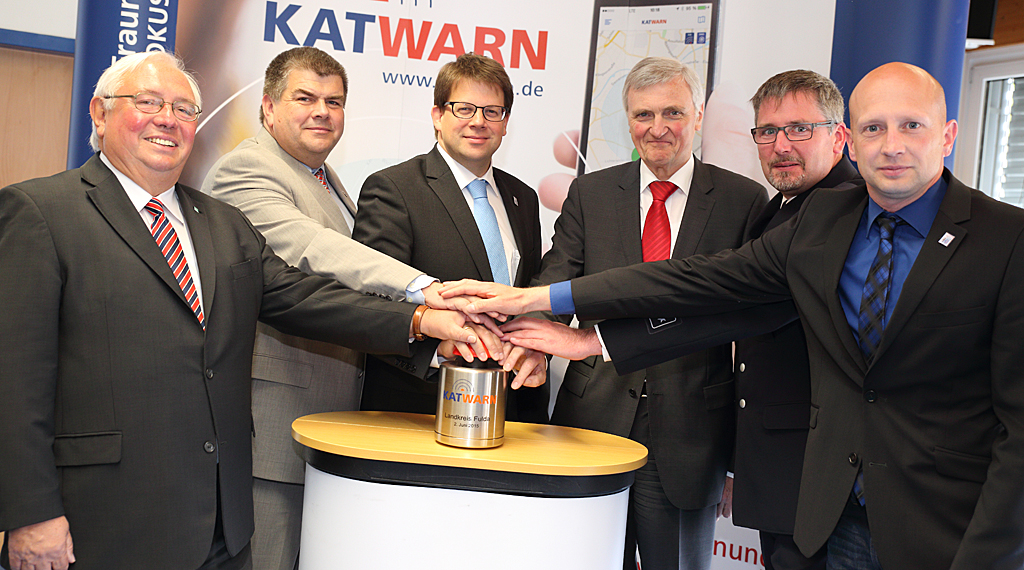 Ab sofort können sich die Bürgerinnen und Bürger des Landkreises Fulda, im Falle einer Notsituation, Warnungen sowie erste Verhaltenshinweisen, direkt auf ihr Tablet, Smartphone oder Handy senden lassen. Das Warn- und Informationssystem „KATWARN“ gibt es für alle User kostenlos als App, SMS und E-Mail. Der digitale Informationsdienst wurde bereits in einigen Regionen Hessens eingeführt und erwies sich als gute Ergänzung zu Rundfunk, Siren sowie Lautsprecherdurchsagen. Als weitere Region in Hessen nimmt ab sofort der Landkreis Fulda das Warnsystem KATWARN in Betrieb. Die Bürgerinnen und Bürger erhalten damit in besonderen Gefahrensituationen Warninformationen, wie zum Beispiel: Großbrände, Smog, Industrieunfälle, Trinkwasservergiftungen und Unwettergefahren wie Hochwasser, direkt auf ihr Mobiltelefon. „KATWARN ist ein wichtiger Baustein, um die Bevölkerung im Gefahrenfall schnell und umfassend zu warnen“, so erster Kreisbeigeordneter Dr. Heiko Wingenfeld.