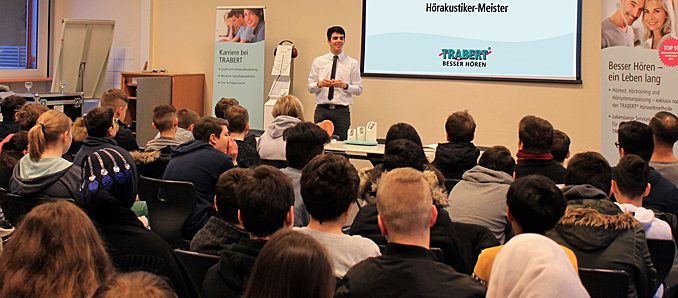 Fulda. Hörakustiker-Meister Florian Heil vom Institut TRABERT Besser Hören in Fulda durfte am vergangenen Mittwoch rund 100 Schüler der Jahrgangsstufe 7 der Heinrich-von-Bibra-Schule Fulda zum Thema „Take care of your ears“ – zu deutsch – „Schütze Deine Ohren!“ sensibilisieren. „Wie laut ist ein vorbeifahrender Lkw?“ oder „Wie sehr schadet ein Presslufthammer meinen Ohren?“, waren Fragen, denen sich Florian Heil widmete.