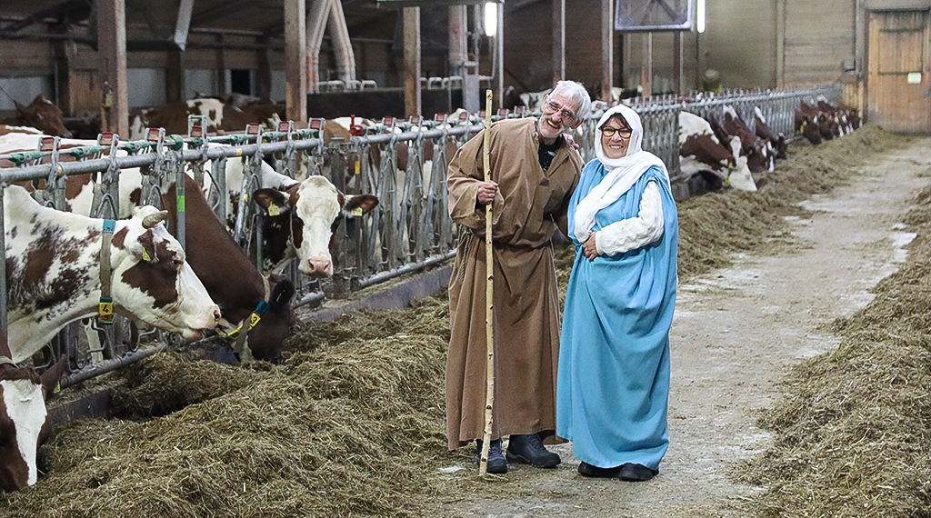 Pater Thomas knüpfte in seiner Predigt ebenfalls an die Bedeutung von Ochs‘ und Esel in einem alttestamentlichen Text des Propheten Jesaja an. Darin wird die besondere Beziehung zwischen dem Ochsen und seinem Besitzer deutlich, die sich gut kennen, ebenso wie der Esel seinen Herrn. „Also sollen wir Menschen auch unseren Herrn erkennen: den Jesus, der zuerst als Baby in der Krippe liegt“, fügt Pater Thomas hinzu.