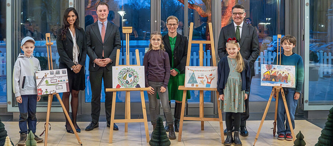 Unter den Gewinnern ist die neunjährige Jule aus Simmersbach im Lahn-Dill-Kreis. Ihr Bild zeigt einen detailreich dekorierten Plätzchenteller. Auch der achtjährige Noah aus Bad Nauheim im Wetteraukreis gehört zu den Gewinnern mit seinem Bild von einer bunten Weihnachtsbäckerei. Außerdem wird das Bild der neunjährigen Lia Elisabeth aus Frankfurt auf den Weihnachtskarten gedruckt. Es zeigt einen Weihnachtsmann und ein Lebkuchenmännchen neben einem Weihnachtsbaum.