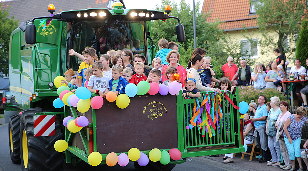 Zell. Weit über 1000 Besucher strömten am Freitagabend zur zwanzigsten Auflage des Blinklichtmähdrescherfests im Romröder Stadtteil Zell. Ein gutes Dutzend der landwirtschaftlichen Ernteboliden schlängelte sich zusammen mit Oldtimer-Traktoren und weiteren ausgefallenen landwirtschaftlichen Maschinen durch die Straßen des Orts. Angeführt wurde der Landwirtschaftslindwurm von Otto Lings Safety-Car-Schlepper, dem Udo Kornmanns Bautz-Mähdrescher mit dem Aushängeschild folgte: „Es gibt Landwirte – es gibt Mähdrescherfahrer – aber nur wir sind Blinklichtmähdrescherfahrer“. Der Fanclub der Blinklichtmähdrescherfahrer sorgte auch in diesem Jahr mit einer „Fanmeile“ für Stimmung pur. In bunten Kostümen gab es zwei Tanzchoreographien mit einer bekannten Biene und Partyhits.