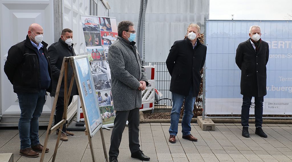 „Dieser Standort ist wichtig für uns, zumal die Pandemie wieder an Fahrt aufnimmt und hier das Einfahrtstor für potenzielle Covid-Patienten ist. Das Bürgertest-Zentrum ist ein Schritt in die richtige Richtung und wichtig für die ersehnte Rückkehr zur Normalität. Wenn man getestet wurde, dann hat dieser Abstrich bzw. das Testergebnis eine Gültigkeit von 24 Stunden (tagesaktueller Test). Beim Zutritt ins Krankenhaus müssen wir andere Regeln geltend machen wie in der freien Wirtschaft. Das wird überall ein bisschen anders gehändelt. Aber hier sind wir mit dem Landkreis und dem DRK in enger Abstimmung, sodass wir das zusammen hinbekommen werden“, sagte der Vorstand Administration der Klinikum Fulda gAG, Burkhard Bingel.