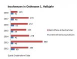 Die aktuelle Statistik über das Insolvenzgeschehen in Deutschland bestätigt sich auch zum Teil für die Region Osthessen. Deutschlandweit sinken zum achten Mal in Folge die Unternehmensinsolvenzen um 3,3 Prozent auf rund 9900 Fälle. Im Vergleich dazu waren es im 1. Halbjahr 2017 noch 10.240 Fälle. Trotz der Gesamtabnahme der Unternehmensinsolvenzen ist ein Anstieg der betroffenen Beschäftigten um 18,8 Prozent auf 120.000 enorm gestiegen. Der Grund dafür ist die zunehmende Pleite der größeren mittelständischen Unternehmen mit mehr Mitarbeitern. Genau hier liegt der große Unterschied! In Osthessen ist nicht nur die Anzahl der Firmenpleiten leicht gesunken, sondern auch die Anzahl der dadurch betroffenen Mitarbeiter.