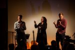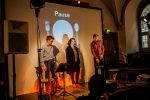 Johannes Gebhardt und Linus Vogel heißen „Jojo+Linus“ mit vollen Namen. Sie kennen sich seit ihrer Banklehre. Dass man ausgerechnet ins so einem trockenen und eher für Diskretion bekannten Milieu einen Partner zur öffentlichen Aufführung von Comedy findet, ist ungewöhnlich, und dass man seine Bühnenambitionen auch danach noch weiter auslebt, obwohl der eine Wirtschaftsinformatik und der andere BWL studiert, das ist bemerkenswert und sicher nicht konform einer üblichen Karriereplanung in der Branche. Allerdings mag es auch als Erklärung dienen, warum Jojo+Linus gerade ihr Song „Bänker“ besonders gut gelungen ist. Sie haben hier wohl zur Freude des Publikums Insider-Wissen abgeschöpft. Überhaupt sind die beiden immer dann besonders lustig, wenn sie böse werden, wie z.B. auch bei dem Lied „Sie fährt“, das die Leiden eines alkoholisierten Beifahrers beschreibt, wenn seine Freundin das Steuer übernimmt. Man wünscht sich direkt mehr Lieder und Textanteile von dieser Sorte, doch gestehen wir dem Duo auch Welpenschutz zu. Sie haben noch viel zu lernen, zeigen aber durchaus auch jetzt schon einiges Potential und Talent, um das Publikum mitzureißen. Wir werden sie auf jeden Fall weiter beobachten und sind gespannt auf ihre zukünftigen Auftritte.