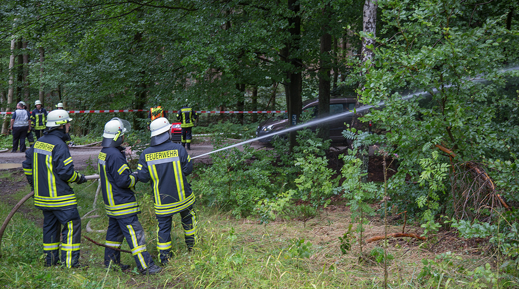 Der Wald ist ein wichtiger Bestandteil unseres Ökosystems und wenn dieser großflächig in Flammen gerät, wie in diesem Sommer im Mecklenburgischem Lübtheen, hat es gravierende Folgen für Umwelt und Natur. Um für den Ernstfall gerüstet zu sein, hat der Landkreis Fulda am Samstag eine großangelegte Übung im Waldgebiet zwischen Nüsttal-Morles und Hofbieber abgehalten. Über 300 Einsatzkräfte unterschiedlicher Organisationen waren an der Großübung beteiligt.