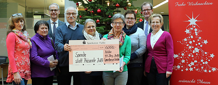 Mit ihrer Aktion „Spende statt Präsente“ hat die Sparkasse Fulda ihr Engagement für die Region auch in diesem Jahr kurz vor Weihnachten abgerundet. Drei Vereine, die Angehörige pflegebedürftiger Menschen besonders unterstützen, erhielten eine Spende über je 2.000 Euro: Miteinander – Füreinander Großenlüder, Miteinander – Füreinander Oberes Fuldatal und der Verein „Herbstzeit“ aus Fulda. Im Gegenzug verzichtete die Sparkasse darauf, Kunden zu Weihnachten ein Geschenk zu machen. Nach den Worten von Uwe Marohn, stellvertretender Vorstandsvorsitzender der Sparkasse, leben in Deutschland fast drei Viertel aller pflegebedürftigen Menschen in häuslicher Umgebung. Trotz der professionellen Hilfe ambulanter Pflegedienste sei diese Situation für Familienangehörige oft eine enorme körperliche und psychische Herausforderung. Vereine und Initiativen, die die Angehörigen entlasten, seien deshalb ein wertvoller Beitrag zu einem humanen Miteinander in der Gesellschaft. Bei der Sparkasse steht „Spende statt Präsente“ seit dem Jahr 1998 fest im Terminkalender. Die Schwerpunkte wechseln von Jahr zu Jahr. Im letzten Jahr hatte sich die Sparkasse auf heimische Initiativen der Palliativversorgung und Hospizarbeit konzentriert. +++