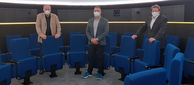 Fuldas Oberbürgermeister Dr. Heiko Wingenfeld überzeugte sich vorab von der Qualität des modernisierten Planetariums und zeigte sich beeindruckt von den Möglichkeiten der neuen Technik: „Mit unserem Planetarium, das nun wieder auf dem neuesten Stand der Technik ist, wurde eine weitere Attraktion mitten in der Stadt für Interessierte aller Altersgruppen, für Bürgerinnen und Bürger ebenso wie für Gäste, geschaffen.“ Dank gebühre dafür auch dem engagierten Team des Planetariums, das monatelang an der Modernisierung gearbeitet habe.