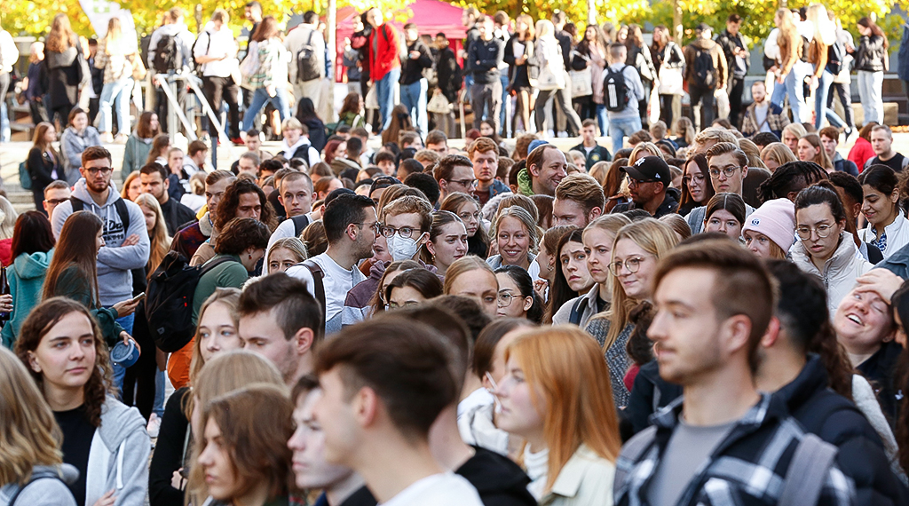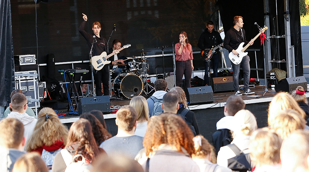 Die Hochschule Fulda hat am heutigen Montag die Studierenden des beginnenden Wintersemesters 2022/23 auf dem Campus begrüßt. Zu der Open-Air-Veranstaltung wurden alle Studierenden eingeladen, neben den Erstsemesterstudierenden auch diejenigen, die ihr Studium während der Pandemie im Online-Modus begonnen hatten. Hochschulpräsident Professor Dr. Karim Khakzar und der Allgemeine Studierendenausschusses (AStA), hießen die Studierenden in Präsenz auf dem Campus willkommen. Rund 1.900 Erstsemesterstudierende nehmen zum Wintersemester ihr Studium an der Hochschule Fulda auf, insgesamt sind damit aktuell über 9.000 Studierende in einem der mehr als 60 Studiengänge eingeschrieben. Die Veranstaltung wurde musikalisch von der Band „Dirty Mind“ begleitet.