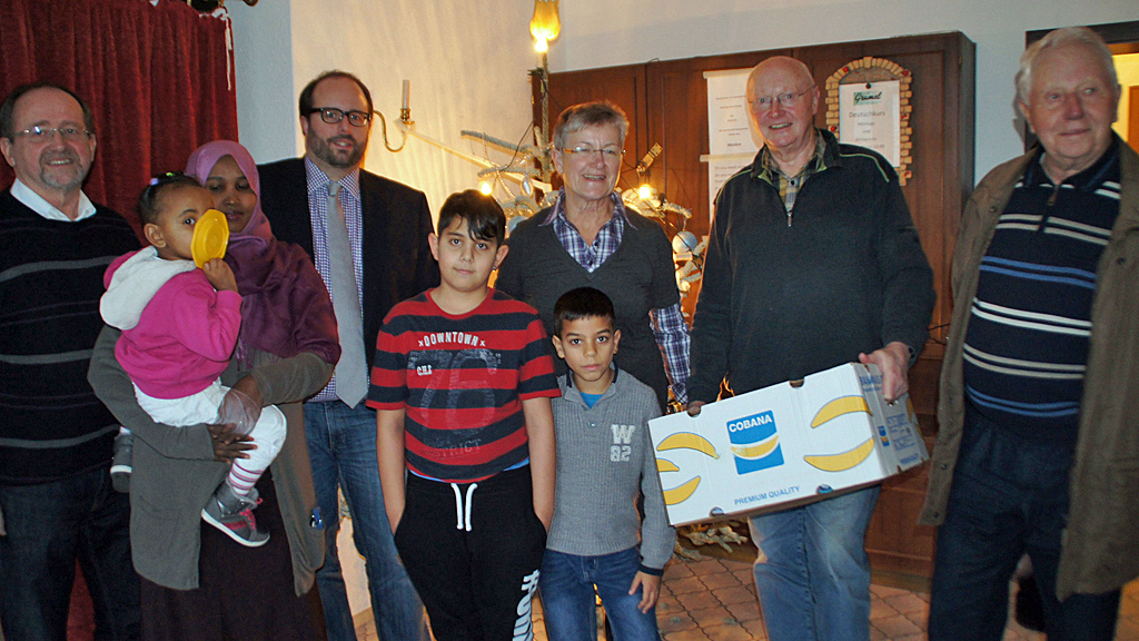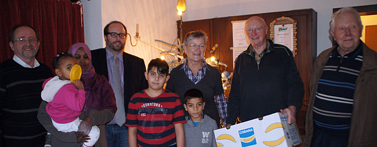 Natürlich braucht es für eine solche Aktion Organisatoren, die den Großteil der Arbeit übernehmen. Hier sind stellvertretend für viele die Familien Möller und Leister zu nennen, die die Wintersammlung abholten, zusammenstellten, in ihrer Garagen lagerten und den gesamten Transport organisierten. Das Zeitfenster von der Idee zur Umsetzung war kurz. Aber die Organisatoren hatten sich vorgenommen, dass die Flüchtlinge noch vor Weihnachten mit der notwendigen Winterkleidung versorgt werden. Und dies klappte. Am 22. De-zember wurde die vorsortierte Kleidung in Kartons im Haus Hedwig in Bad Salzschlirf abgeliefert, sortiert aufgebaut, während das Helferteam eine Kaf-feetafel einrichtete. Unter der Anwesenheit von Bürgermeister Matthias Kübel und der Integrationsbeauftragten von Grümel, Frau Hussein, und natürlich allen anwesenden Helfern konnten die Asylbewerber und Flüchtlingen Winter-bekleidung incl. Schuhe, Mützen, Schals, Handschuhe sowie Babykleidung in Empfang nehmen.