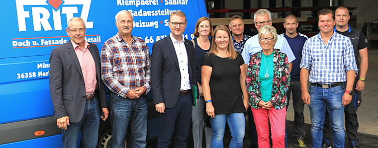 1990 verabschiedete sich Thomas Fritz von seinem Beamtenjob im technischen Dienst der Deutschen Bahn, um mit 30 Jahren noch einmal die Schulbank zu drücken und die Gesellenprüfung zum Gas-Wasser-Installateur und anschließend noch die Meisterprüfung zu absolvieren – „das war schon eine spannende Zeit“, sagt er rückblickend. 1994 übernahm er dann die Firmenleitung, „heute sind wir eines der größten Fachbetriebe für die Ausführung von Bauklempner- und Spenglerarbeiten im Raum Vogelsberg und Fulda“. Projekte aus jüngerer Zeit sind beispielsweise die Fassaden des Amtsgerichts und der Firma Reifen-Brod in Lauterbach wie auch die Gasstation Rixfeld oder die Heizungs- und Sanitärarbeiten in den Seniorenheimen Freiensteinau, Grebenau und Herbstein.