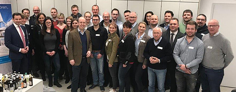 Gastgeber Markus Schmitt (1. Reihe, Dritter von li.) mit den Wirtschaftsjunioren