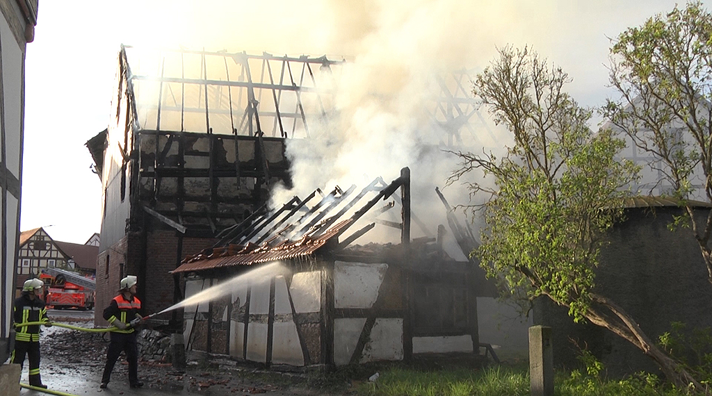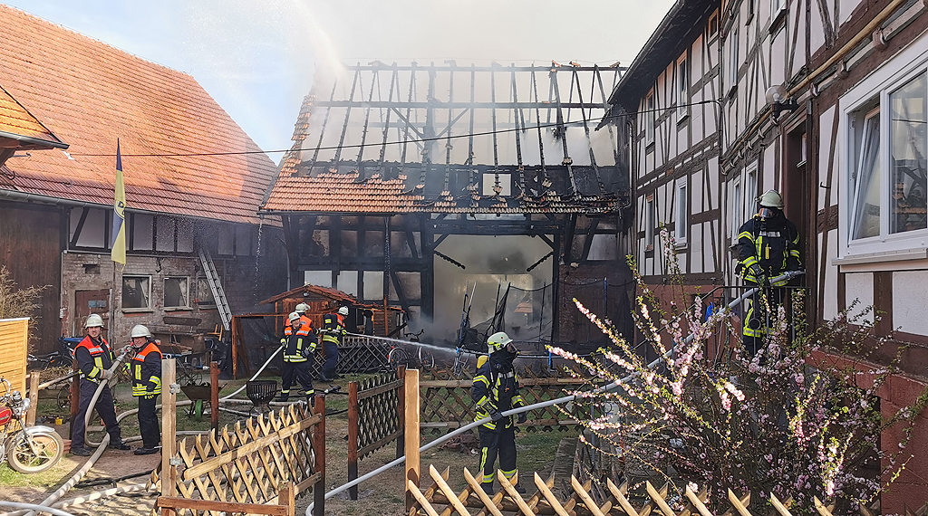Am frühen Mittwochabend kam es zu einem Brand einer Scheune und eines angrenzenden Wohnhauses in der Rundstraße. Das Feuer wurde durch eine Nachbarin und den Hauseigentümer entdeckt, welche im Anschluss die Feuerwehr und Polizei informierten. Nach bisherigen Erkenntnissen entstand der Brand aus bisher unbekanntem Grund im Bereich eines Carports, welches sich in unmittelbarer Nähe einer Scheune befindet und griff dann rasch auf diese und das angrenzende Wohnhaus über. In dem Carport befand sich noch ein Wohnwagen. Die Feuerwehr war mit einem Großaufgebot vor Ort und konnte den Brand letztlich auch unter Kontrolle bringen und löschen. Das Wohnhaus ist aktuell nicht bewohnbar. Durch den Brand wurde glücklicherweise niemand verletzt. Nach ersten Schätzungen beträgt der Gesamtschaden circa 300.000 Euro. Die Kriminalpolizei hat den Brandort beschlagnahmt und führt weitere Ermittlungen zur Brandursache durch, da diese noch nicht bekannt ist. +++