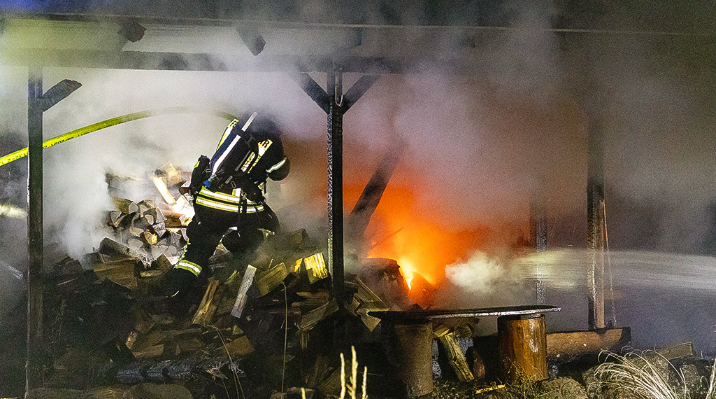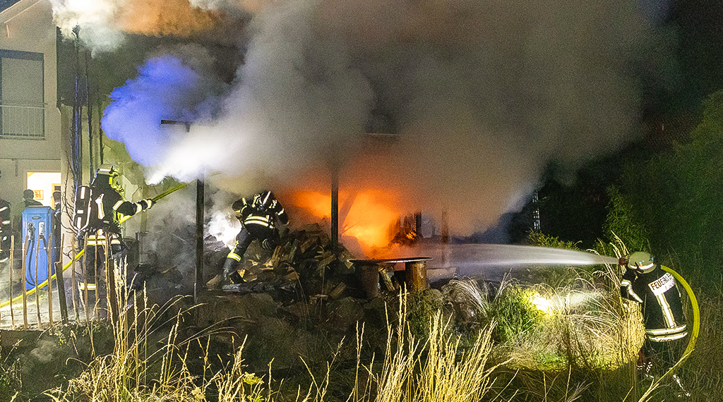 Am späten Samstagabend kam es in der Straße „Am Lehmbach“ zu einem Brand an einem Wohnhausanbau. Die Feuerwehren der Gemeinde Künzell rückten mit einem Großaufgebot an.
