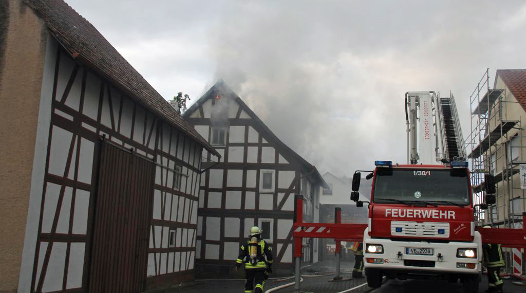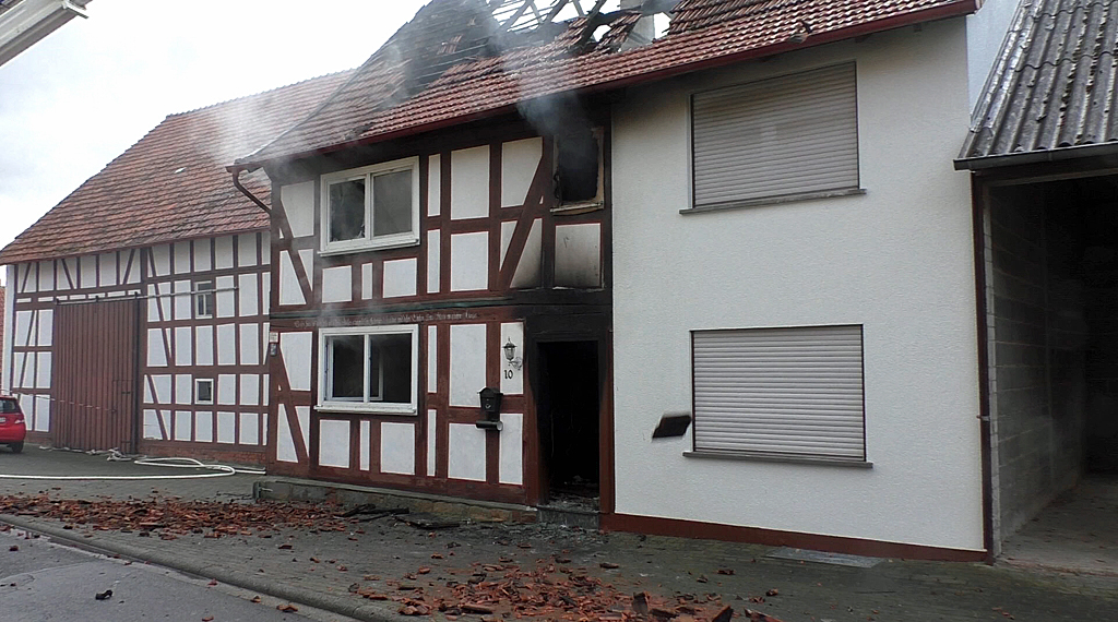 Die Feuerwehr war mit insgesamt 50 Mann im Einsatz, die Wehren von Schlitz und um-liegende Ortsteile sowie die Feuerwehr Lauterbach hatten den Brand bis 13:30 Uhr unter Kontrolle. Die Löscharbeiten dauerten noch bis circa 15:30 Uhr. Die Kriminalpolizei in Alsfeld hat die Ermittlungen zur Brandursache übernommen. Das Haus kann vermutlich am Freitag betreten werden. Durch das Feuer wurde das 100 Jahre alte Fachwerkhaus stark beschädigt und unbewohnbar. Der Brand erstreckte sich über Erdgeschoß, Obergeschoß und ließ die Dachkonstruktion zu einem großen Teil einstürzen. Der Gesamtschaden am Haus beträgt mindestens 100.000 Euro. Zur Brandursache kann derzeit noch keine Aussage getroffen werden. +++