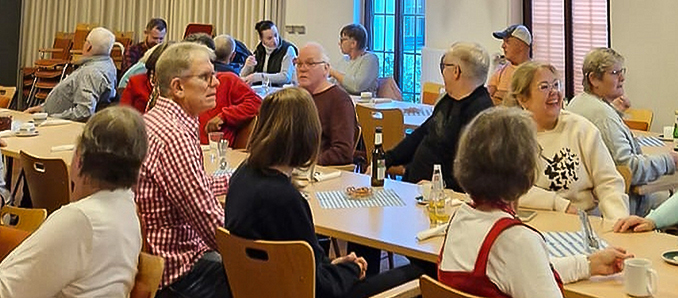 Bei Brathähnchen und Bier herrschte ausgelassene Stimmung. Es wurde viel gelacht, gebärdet und gefeiert. Das Zusammensein in der eigenen Sprachgemeinschaft – heute würde man von einer Community sprechen – erfüllte viele mit Freude und Dankbarkeit. Für zahlreiche Teilnehmende bedeutet der Treff der Caritas ein Ort der Begegnung, der Teilhabe und des Zuhause-Seins.