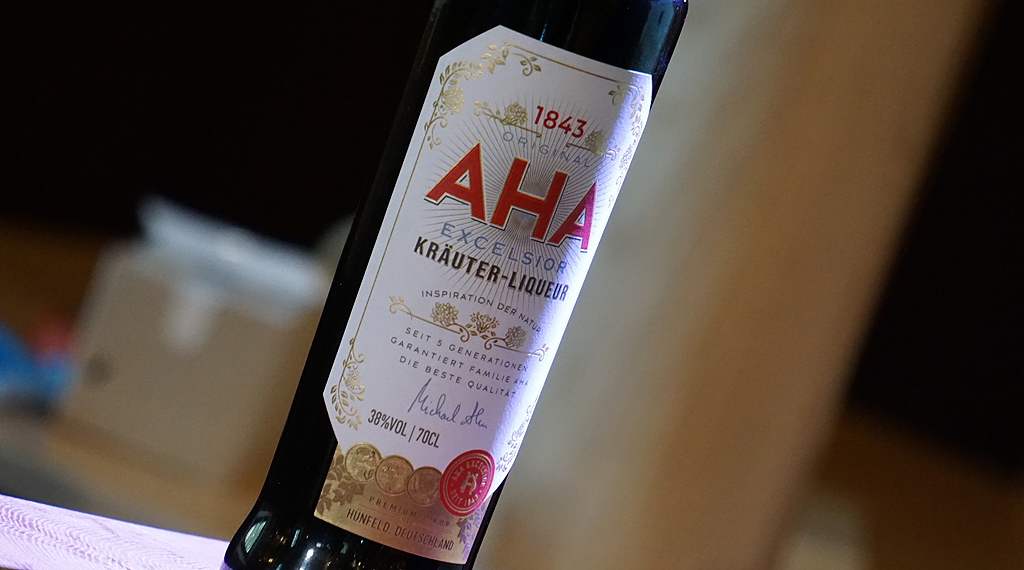 Bereits im 17. Jahrhundert entwickelten Franziskanermönche vom Fuldaer Kloster Frauenberg das Rezept, das aus einer Mischung aus zahlreichen Kräutern, Beeren und Früchten besteht, erzählt Inhaber Michael Aha, der 1977 mit seiner Familie nach Frankreich auswanderte und seitdem in Paris lebt. Der Gewürzhändler Franz Carl Aha erwarb die Rezeptur im Jahre 1843. Daraus entstand der „Aha Excelsior“, der in über hundert Jahren zum Kultgetränk in der Region und weit darüber hinaus wurde. Der „Aha Excelsior“, der einen Alkoholgehalt von 38 Prozent aufweist, wird aus natürlichen Zutaten und hochwertigem Destillat hergestellt, aufwändig mazeriert und reift im Eichenfass. Der Kräuterlikör zeichnet sich durch seine ausgewogene Mischung aus heimischen und exotischen Pflanzen, das intensive Aroma und die Herstellung in Handarbeit aus.