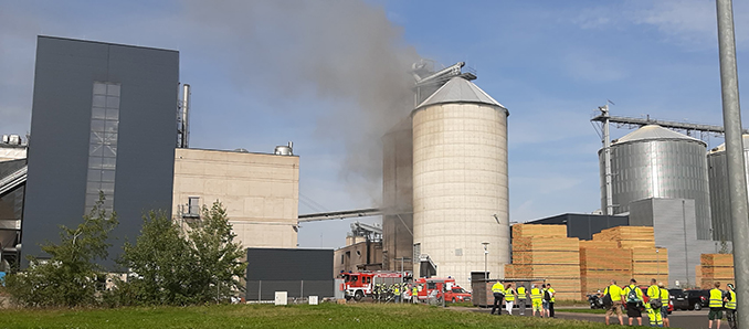 Zwei Großsilos geraten auf Gelände von Sägewerk in Brand