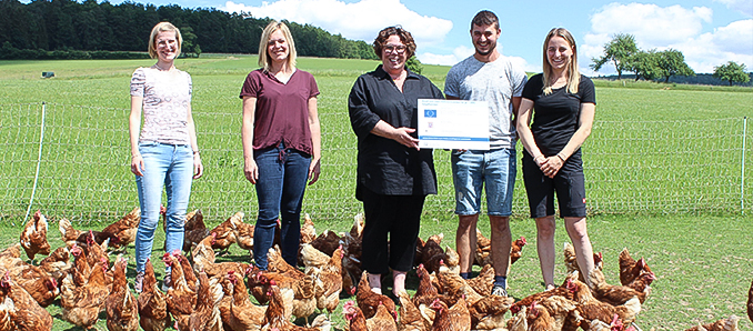 Die Landwirtschaftsdezernentin überbrachte gemeinsam mit Katrin Hess und Christina Gebhardt vom Amt für Umwelt, Naturschutz und ländlichen Raum, die Hinweistafel, die über die AFP-Förderung Auskunft gibt. „Wir freuen uns über die Förderung, die es uns ermöglicht hat, unseren Betrieb weiter auszubauen“, so Antonio Kreis. +++ pm