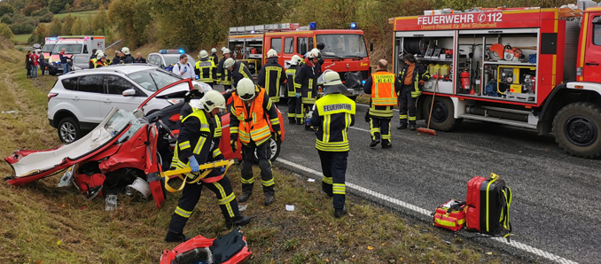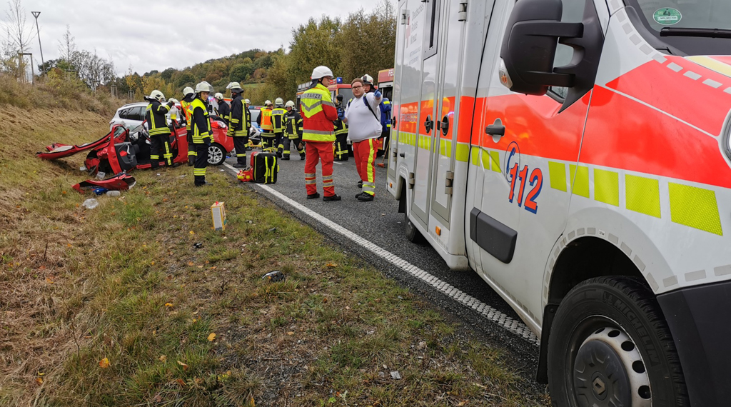 Auf der Bundesstraße 62 zwischen Alsfeld und Kirtorf kam es bei Ober-Gleen zu einem schweren Verkehrsunfall. Laut Polizeiangaben prallten insgesamt drei Autos bei einem Frontalzusammenstoß ineinander. Wie ein Polizeisprecher sagte, geriet eine 40-jährige Autofahrerin aus Stadtallendorf in den Gegenverkehr und prallte dort mit zwei Autos zusammen. Während die Unfall verursachende Fahrerin leicht verletzt wurde, zog sich ihre 39-jährige Beifahrerin schwere Verletzungen zu. Sie musste von den Frauen und Männern der Freiwilligen Feuerwehr der Stadt Kirtorf mit hydraulischem Rettungsgerät aus dem Unfallwrack befreit werden. Laut Feuerwehrangaben wurde das Unfallopfer jedoch nicht in den Trümmerteilen eingeklemmt. „Aufgrund der Verletzungen des Unfallopfers musste eine sogenannte patientenorientierte Rettung durchgeführt werden, dazu musste auch das Dach des Fahrzeugwracks abgeschnitten werden“, so der einsatzleitende Kirtorfer Stadtbrandinspektor Heino Becker.