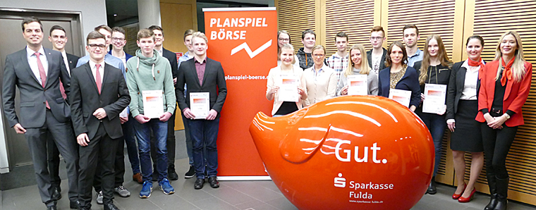 Zum anderen und nebenbei erhielten alle Teilnehmerinnen und Teilnehmer viele neue Einblicke ins Wirt- schaftsleben; genau das ist der zentrale pädagogische Ansatz des Planspiels. Insgesamt nahmen in Stadt und Landkreis Fulda knapp 300 Gruppen und 800 Schülerinnen und Schüler teil. Die zeigten auch ihren Lehrern, was in ihnen steckt: Mit einem Endergebnis von etwas über 52.000 Euro blieb die beste Lehrerin hinter den Siegern der Schülerwertung deutlich zurück. An der Börse reicht es eben nicht, ein bisschen mehr zu wissen. Zum feinen Näschen muss sich auch das berühmte Quäntchen Glück gesellen. +++