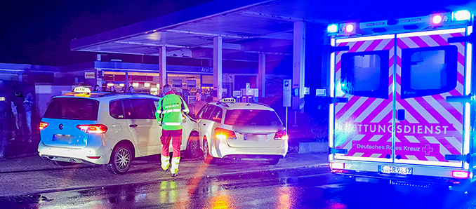 Am Mittwochabend war es gegen 22.40 Uhr im Bereich einer Tankstelle in der Schlitzer Straße zu einem Verkehrsunfall zwischen zwei Taxis gekommen. Nach aktuellem Kenntnisstand kollidierte dabei ein 50-jähriger Mann aus Fulda im Rahmen eines plötzlichen Abbiegemanövers aus noch unklarer Ursache mit der Fahrertür eines vorausfahrenden 28-jährigen Petersbergers. Im Anschluss soll ein 29-jähriger Beifahrer aus dem Taxi des Petersbergers dem 50-Jährigen aus noch unbekannten Gründen unvermittelt ins Gesicht geschlagen haben. Alle Beteiligten wurden in einem Rettungswagen vor Ort medizinisch behandelt. An beiden Taxis entstand Sachschaden in Gesamthöhe von rund 25.000 Euro. Nur wenige Minuten zuvor war die Polizei bereits zu einer körperlichen Auseinandersetzung zwischen mehreren Personen an der Wohnanschrift des 50-Jährigen in Fulda alarmiert worden. Nach derzeit vorliegenden Erkenntnissen sollen der 28-jährige Taxi-Fahrer und sein Beifahrer an den Streitigkeiten, bei welchen ein 23-Jähriger verletzt wurde, beteiligt gewesen sein. Zur Klärung des Sachverhalts wurden die beiden 28 und 29 Jahre alten Männer daher zunächst zur Dienststelle verbracht, welche sie im Anschluss an die polizeilichen Maßnahmen wieder verlassen konnten. Nach momentanem Kenntnisstand dürften die Hintergründe der Streitigkeiten im persönlichen Bereich liegen. Die Polizei in Fulda hat die entsprechenden Ermittlungen aufgenommen, die aktuell andauern. Zeuginnen und Zeugen, die in diesem Zusammenhang sachdienliche Hinweise geben können - insbesondere zum Unfallablauf in der Schlitzer Straße - werden gebeten, sich an das Polizeipräsidium Osthessen unter Telefon 0661/105-0 oder jede andere Polizeidienststelle zu wenden. +++