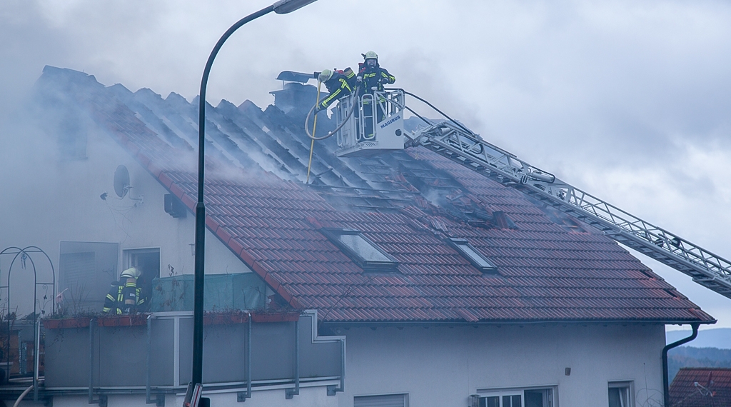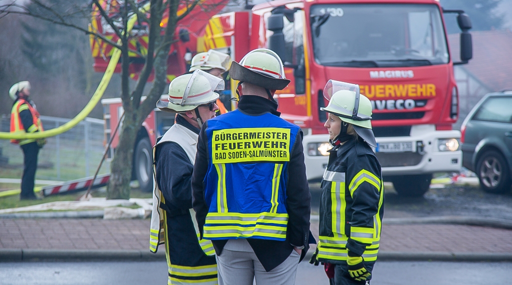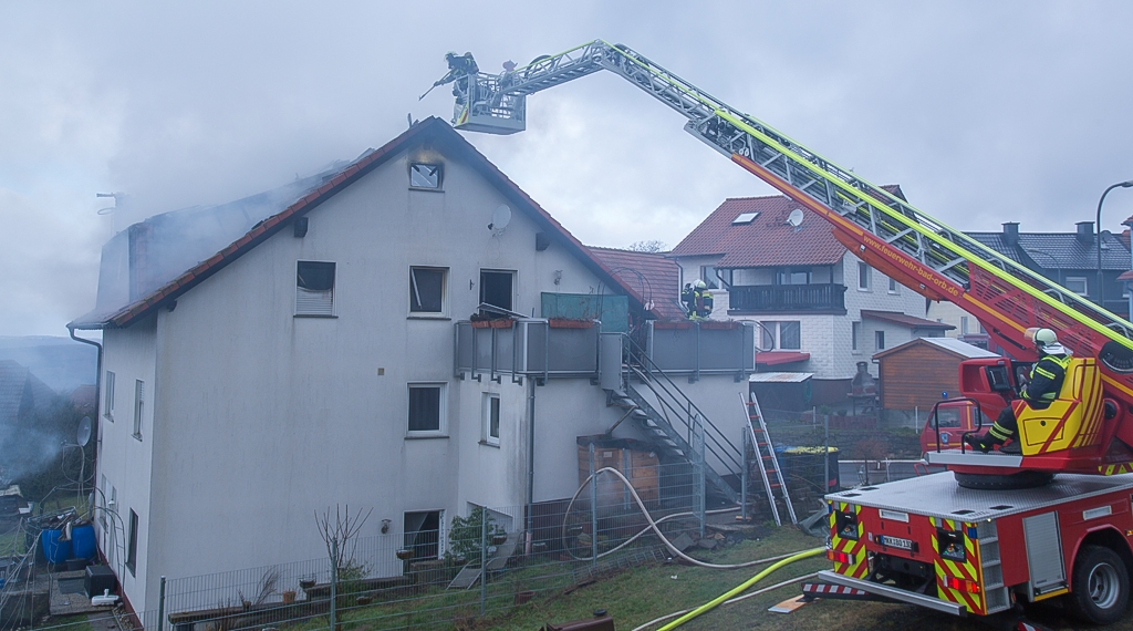 Ein Brand in einem Zweifamilienhaus in Bad Soden-Salmünster Ortsteil Alsberg im Main-Kinzig-Kreis hat am Mittwoch ein Großaufgebot der Feuerwehr stundenlang in Atem gehalten. Ersten Angaben zufolge war das Feuer in der oberen Wohnung ausgebrochen und hatte sich rasch auf den Dachstuhl ausgeweitet. Da zunächst unklar war, ob sich noch Menschen und Tiere im Inneren befanden, hatte die Menschenrettung Priorität, so dass Kräfte unter Atemschutz ins Innere gingen, um dort nach möglichen Personen zu suchen. Da in dem Gebäude auch zwei Listenhunde gemeldet waren, musste dies unter besonderer Vorsicht geschehen. Menschen befanden sich aber nicht mehr in dem Haus, ein Hund konnte aus dem völlig verqualmten Gebäude gerettet werden.